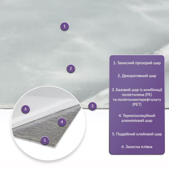 Матеріал: PE+PET, складається з суміші двох полімерів: поліетилену (PE) та поліетилентерефталату (PET) Розміри: Рулон: 60 см х 300 см х 2...